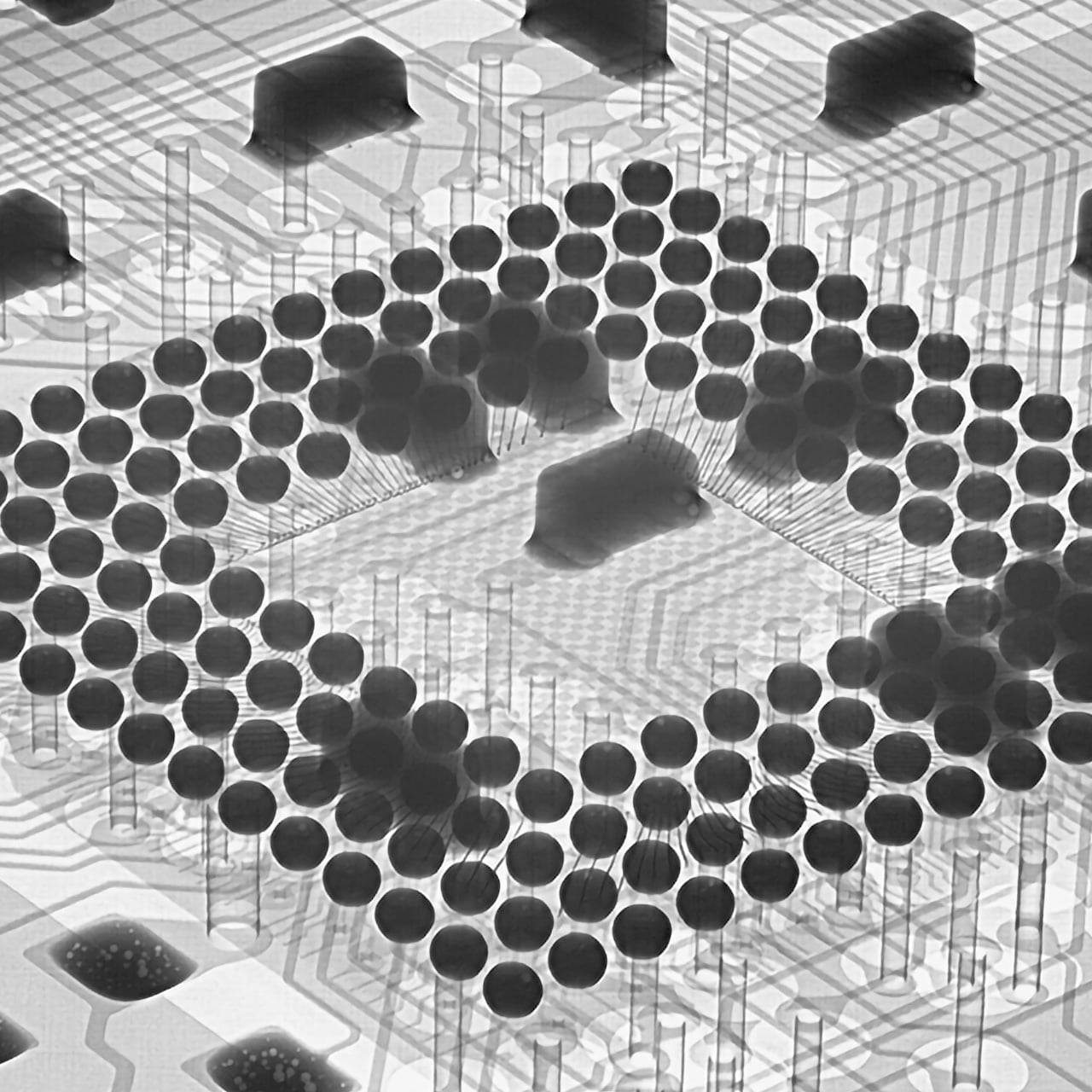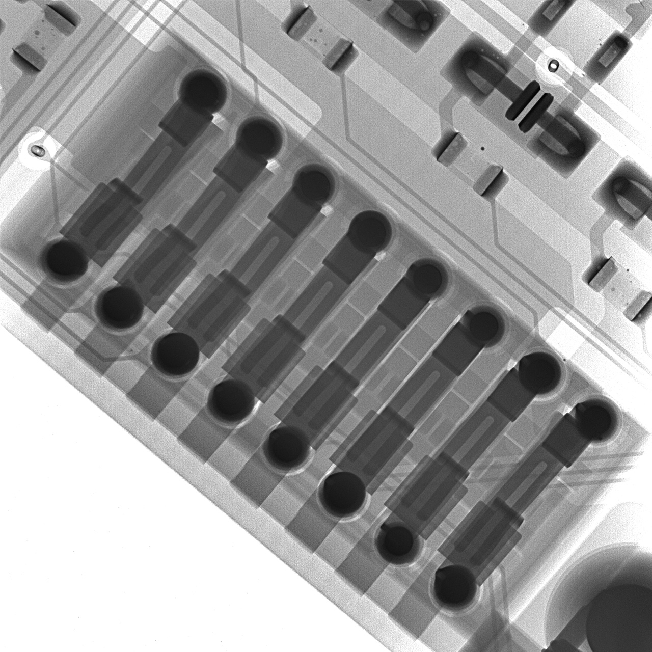The precision µX8600 is an effective X-ray inspection system for Printed circuit boards with ICs such as BGAs. The camera's tilt function allows for inspection of objects in three dimensions. This allows inspection of various components such as multilayer PCBs, voids, barrel fill (THT), etc.